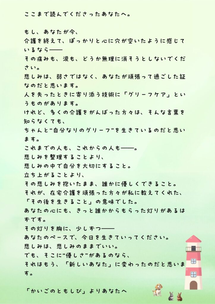 ここまで「かいごのともしび」を読んでくださったすべての皆様へ。